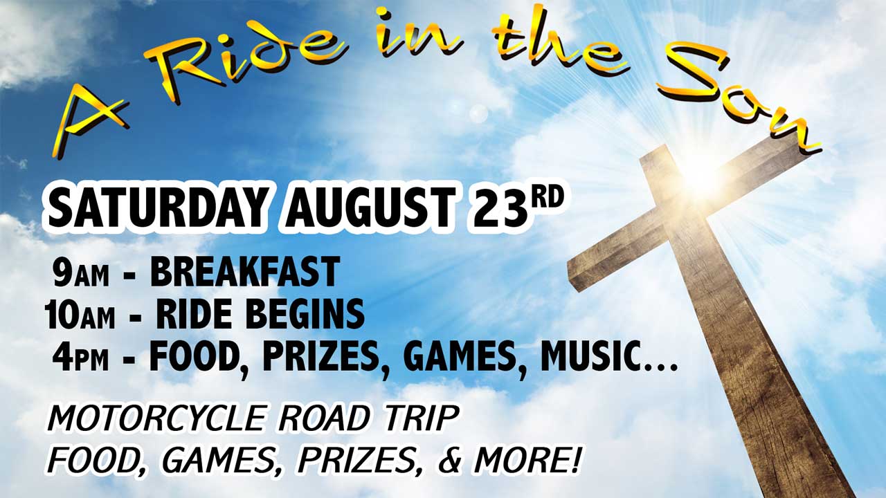Join us Saturday August 23 for a motorcycle ride to Coshocton & back! Breakfast and hangout starting at 9am, ride starts at 10am returning at 4pm for food, games and music from the Good Life Band! This is a community event and fundraiser for our upcoming Dominican Republic ministry trip. Everyone and ALL Vehicles welcome to come!